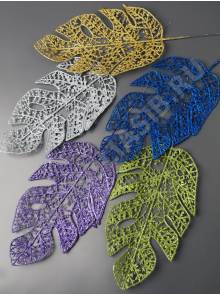 Лист папоротника узкого пластм. мерцающего 39/52см (зол сер черн)