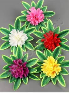 Хризантема на листе неткан. 5 сл 10/14см (бел крас син роз сир жёл перс)